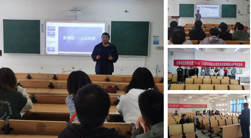 物理与电子工程学院积极响应,精心部署,为电子信息工程(电信工程)专业的学生组织了”1+X”移动网络运维职业技能等级认证考试启动仪式,副院长姬长建、院长助理刘萌分别对”1+X”证书制度进行了解读,鼓励同学们在获得学历证书的同时,积极取得多类职业技能等级证书,拓展就业创业本领,构建终身学习、持续成长基础。