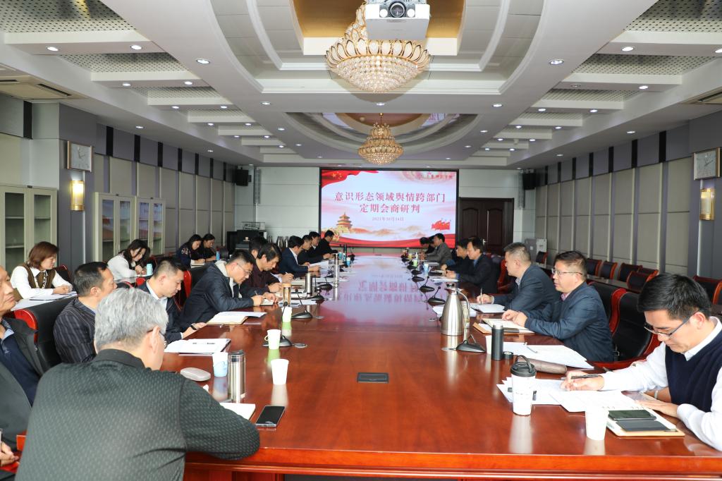 会上,刘宝君对当前意识形态领域形势进行了通报。党委宣传部副部长辛源传达了上级对意识形态工作专项的通报文件,对学校制定出台的《意识形态领域舆情跨部门定期会商研判制度》进行了汇报和解读。根据意识形态专项巡视整改要求,为加强部门间的协同联动和情况沟通,进一步提高意识形态领域舆情问题的发现力、研判力、处置力,学校建立意识形态定期会商研判制度。
