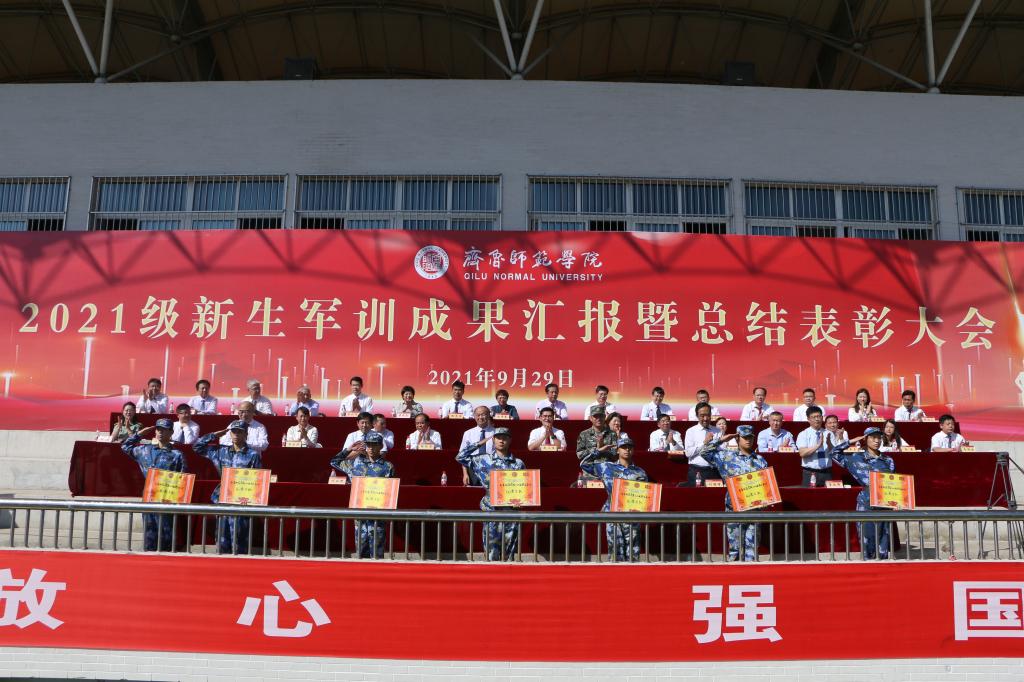 9月29日上午,永利官网2021级新生军训成果汇报暨总结表彰大会在章丘校区运动场隆重举行,5000多名师院新生在绿茵场上集结,检验14天刻苦训练成果。校党委书记王玉华,中国人民解放军32101部队李虎,党委副书记刘宝君,副校长刘德增,党委委员、纪委书记、监察专员李启波,党委委员、党委组织部部长李伯伟,承训部队官兵,学校相关职能部门负责人,各学院院长,党总支书记、副书记,团总支书记、副书记,新生辅导员及2021级全体新生参加大会。王玉华作军训总结讲话并向承训部队赠送锦旗,大会由刘宝君主持。