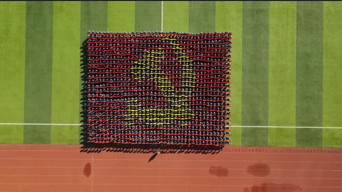 歌声嘹亮,国旗飘扬,大会在雄壮的国歌声中拉开帷幕。学生军训团17个方阵依次经过主席台,接受检阅。他们队列整齐划一、步伐铿锵有力、口号气势磅礴,展现了永利官网青年学子朝气蓬勃、斗志昂扬、奋发有为的精神面貌。日常养成训练军容严整、军姿飒爽、动作规范;卧倒、滚翻、搜索前进等单兵技能,掩护配合、攻防兼备的班组战术,不仅是同学们自身技能的训练,更是对团队配合的磨练和血性意志的锤炼;红黄彩旗挥舞,现代战争中的讯息得以传递,同学们精神昂扬、默契十足,用“旗语操”表达出对军事知识的掌握和良好的团队协作意识;拳打、脚踢、摔打、夺刀、夺枪……“军体拳”培养了同学们阳刚气质、顽强意志、强健体魄和过人胆识,是对矢志不渝的战斗精神和对国家忠诚信念的体现;青春的旋律、欢快的舞曲、矫健的步伐、优美的动作,“手语操”展示着师院学子青春洋溢、勃勃生机的精神面貌;“我爱师院”“伟大的中国共产党万岁”“伟大的祖国万岁”“请党放心、强国有我”……伴随着响亮的口号声,1000名学生用手中的花环摆出了“I爱QLNU”“1921-2021”“100”、党徽、国旗等图案字样。拳拳爱国志,殷殷赤子心,全体新生以实际行动表达对学校的爱,对党和国家的感恩与祝福,向中国共产党成立100周年献礼。
