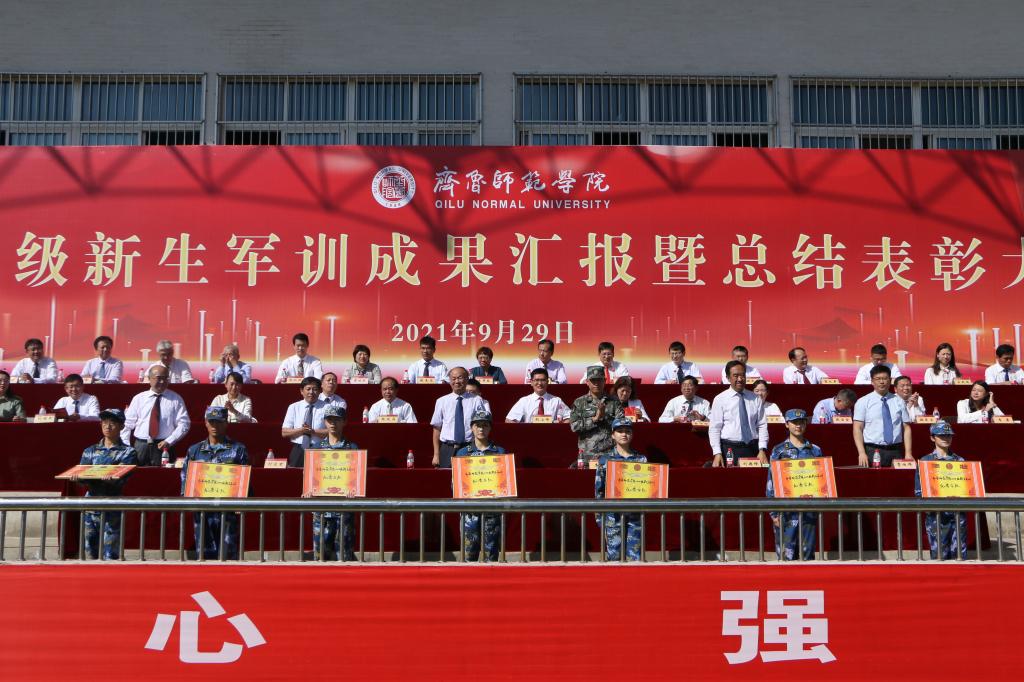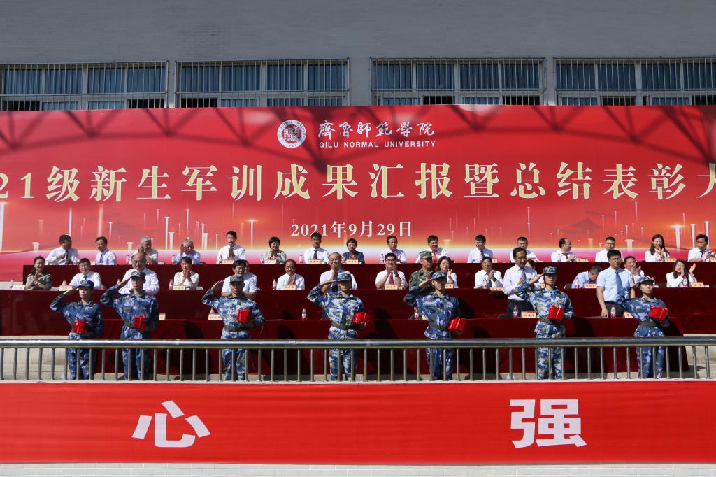 在全体齐唱《没有共产党就没有新中国》的歌声中,2021级新生军训成果汇报暨总结表彰大会取得圆满成功。
