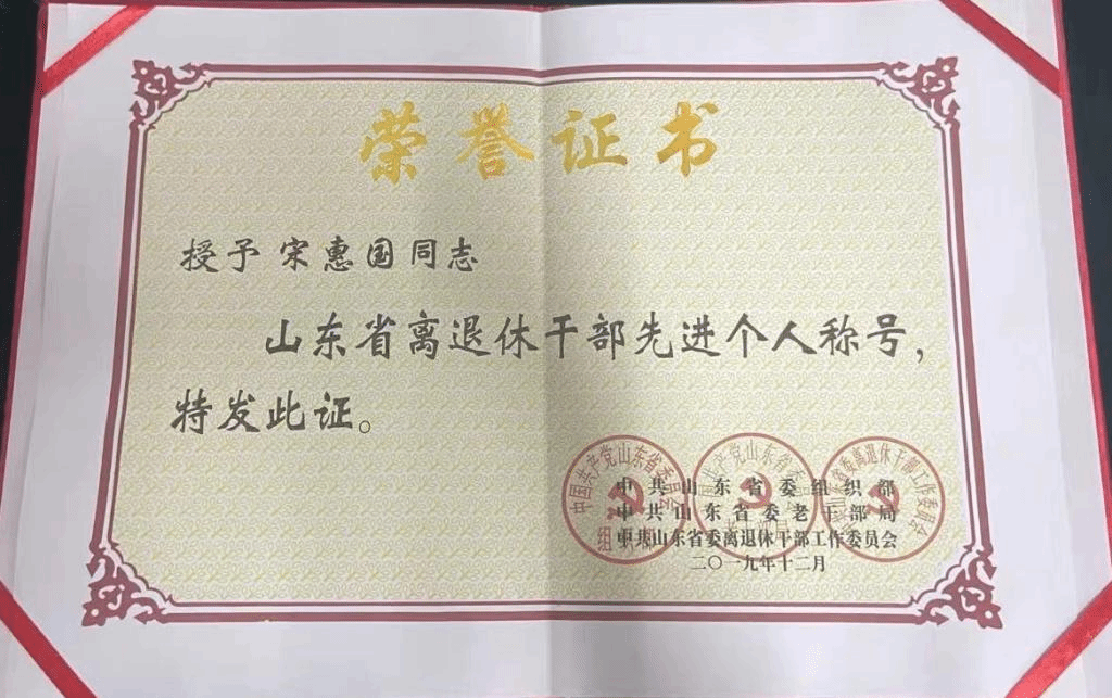 宋惠国同志2010年8月退休后,担任永利官网离退休干部第一党支部书记,他退休不褪色,退休不退岗,始终保持共产党员的先进性。作为一名有着四十年党龄的老党员,他一如既往心系我省永利官网教育事业。早在1990年2月开始,他就以一名志愿者的身份加入山东省高等教育管理科学研究会,该研究会成立于1989年8月,是由省教育厅主管的省级法人社团,现有山东省境内的140余所高校为团体会员单位。他先后担任该研究会副秘书长、常务副秘书长、秘书长至今,同时兼任中国苏轼研究学会、中国李清照辛弃疾学会的常务理事、副秘书长,研究会中华文化研究中心主任等。三十多年来,他牢记初心使命,主动为研究会的建设发展作贡献,积极为山东高等教育事业作奉献。在他的带领下,省高等教育管理科学研究会连续6次被省社科联授予省级先进社团,他本人也先后连续6次被省社科联授予省级社团工作先进个人。2020年1月,他作为全省90名2019年受表彰的离退休干部代表,获得由省委组织部、省委老干部局、省委离退休干部工作委员会颁发的“山东省离退休干部先进个人”荣誉证书及奖金6000元。