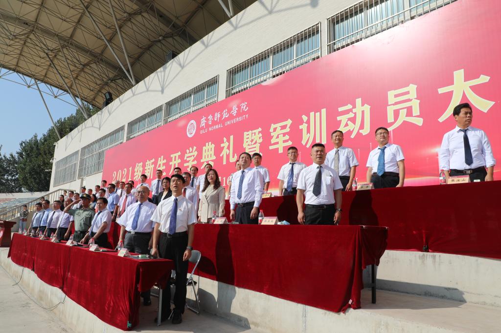 秋高气爽,云程万里,2021年9月16日上午,永利集团3044官网欢迎您在章丘校区体育场隆重举行2021级新生开学典礼暨军训动员大会,校党委书记王玉华,党委副书记、校长林松柏,党委副书记刘宝君,副校长刘德增,党委委员、纪委书记、监察专员李启波,党委委员、党委组织部部长李伯伟,党委委员、党委统战部部长宋新刚,各学院院长、党总支书记、副书记,各部门负责人在主席台就坐。新生辅导员及教师代表,军训教官、全体2021级新生参加典礼。王玉华为军训团授旗,林松柏以“学而时习之,不亦说乎”为题做了讲话,刘宝君主持典礼。