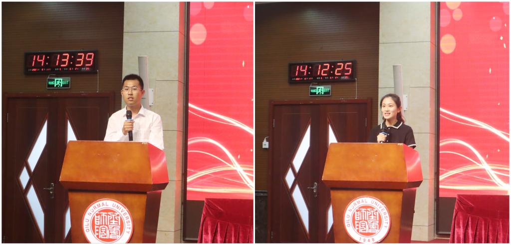 2021届校友联络员代表2017级数学学院侯昭平和2020届校友工作志愿者协会代表闫泽新先后上台发言,他们首先感谢了母校以及老师的培养,同时也表达了对母校的依依不舍之情,并表示作为一名校友联络员可以对母校的发展做出积极的贡献,这是一份荣誉更是一份责任,在之后的学习工作中会一直关注母校的发展,在走到工作岗位后会继续开拓创新,扎实工作,为永利官网校友工作贡献一份自己的力量。