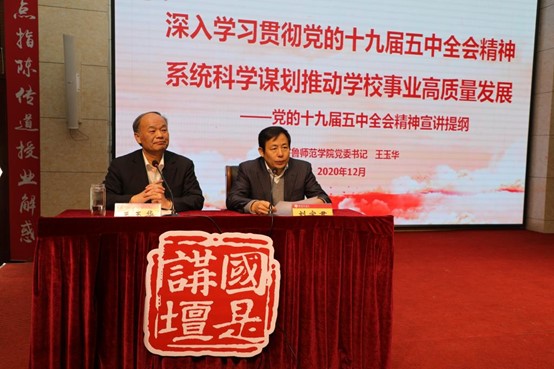 学校党委制定下发了关于认真学习贯彻党的十九届五中全会精神的通知,各部门单位按照统一部署和要求,紧密结合各自实际,周密安排部署,全力抓好学习贯彻,迅速掀起学习热潮。党委中心组举行1+X模式扩大会议传达学习党的十九届五中全会精神,把学习贯彻党的十九届五中全会精神作为统一思想、凝聚共识的重要政治任务来抓实抓细抓好。学校面向不同的群体,开展形式多样的主题宣传活动,通过与师生面对面进行宣讲,宣传阐释好全会精神。12月3日,省委教育工委宣讲团成员、党委书记王玉华为全校中层以上干部和师生代表宣讲。