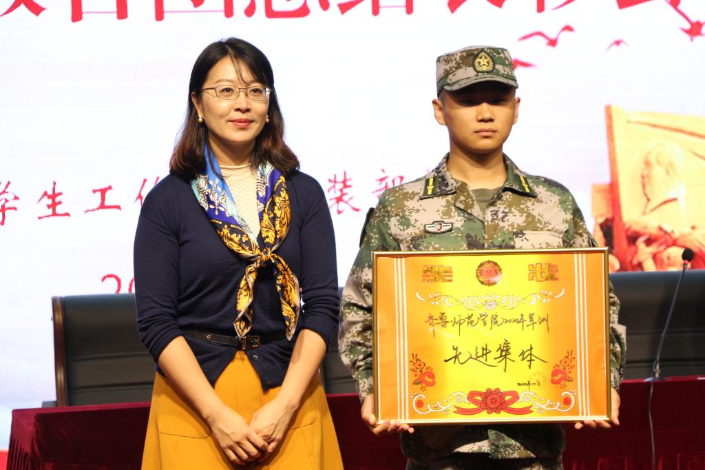 会上,教师教育学院丁菲,物理与电子工程学院王伟,体育学院宫卫,美术学院崔翔代表全体军训团教官分别进行了发言。四位同学分享了自己军训中的感悟,纷纷表示今后会把在军训中凝练形成的齐鲁师院军训教官团精神,不断传承下去,在今后的学习和工作中,不断发扬听党指挥、作风优良、敢于亮剑的精神,展现新时代退伍复学大学生的风采,争取做出更大的贡献。
