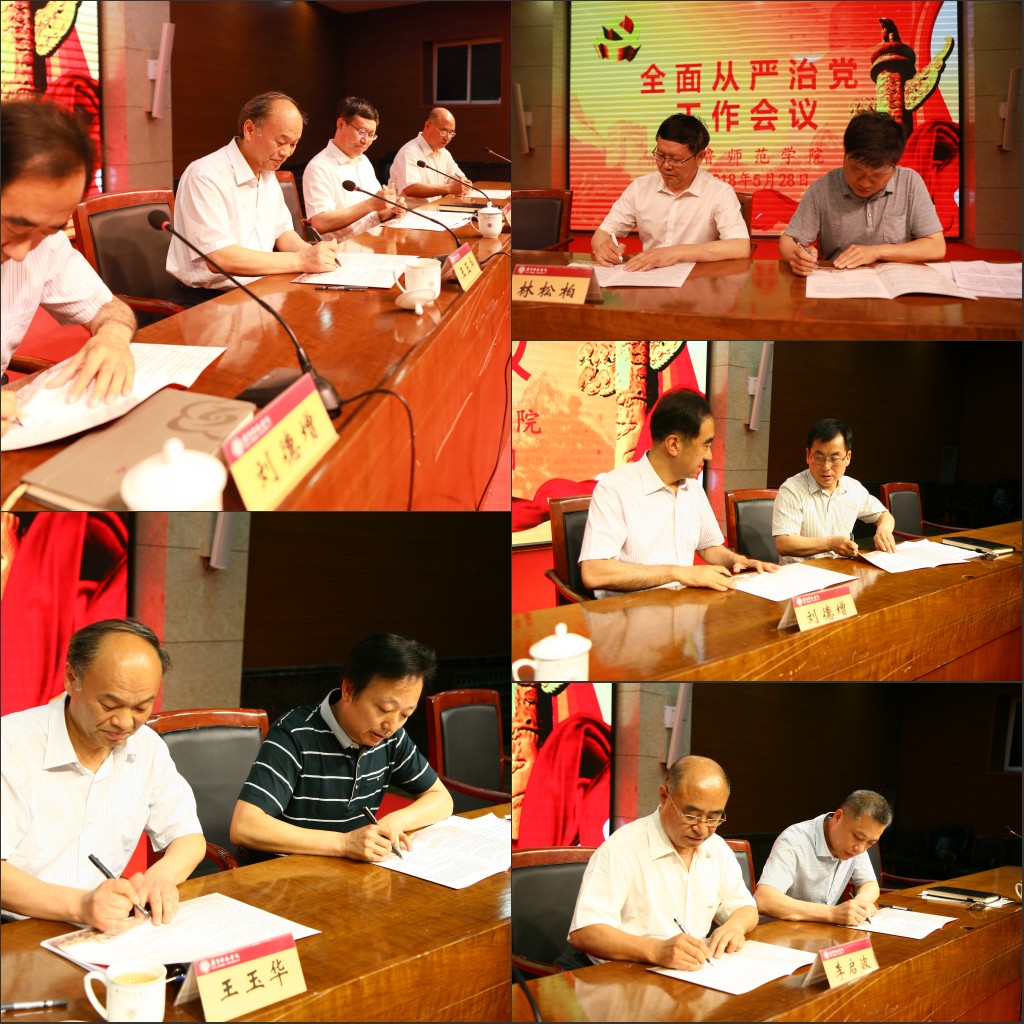 会上举行了全面从严治党责任书签订仪式。党委书记与党委班子成员、校领导与分管部门层层签订了《全面从严治党责任书》。