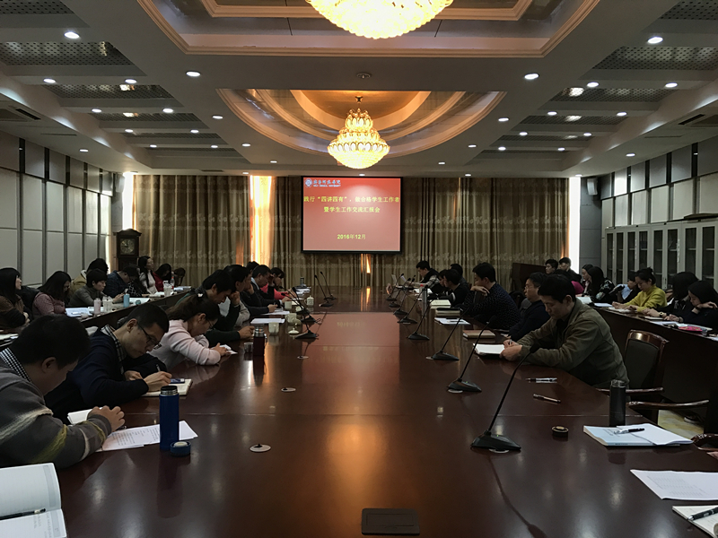 12月14日下午,学校在章丘校区图书馆四楼会议室召开2016年学生工作学习汇报交流会,会议围绕“践行‘四讲四有’,做合格学生工作者”的研讨主题,结合学生工作实际,交流工作体会,分享学习心得。校党委副书记张殿臣同志出席会议并讲话,宣传部、学生处、团委相关人员以及全体辅导员参加了会议。