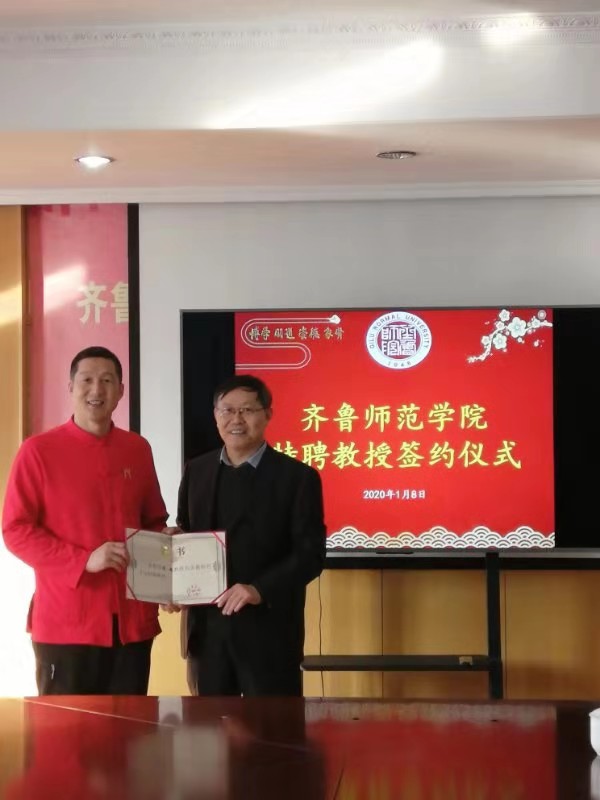 1月8日上午,永利官网聘请中华武状元陈超为特聘教授仪式在历下校区办公楼四楼会议室举行。党委副书记、校长林松柏出席仪式,并为陈超教授颁发聘书。仪式由体育学院院长刘健教授主持,人事处副处长李伟、体育学院副院长胡义忠、教师代表张立天参加受聘仪式。