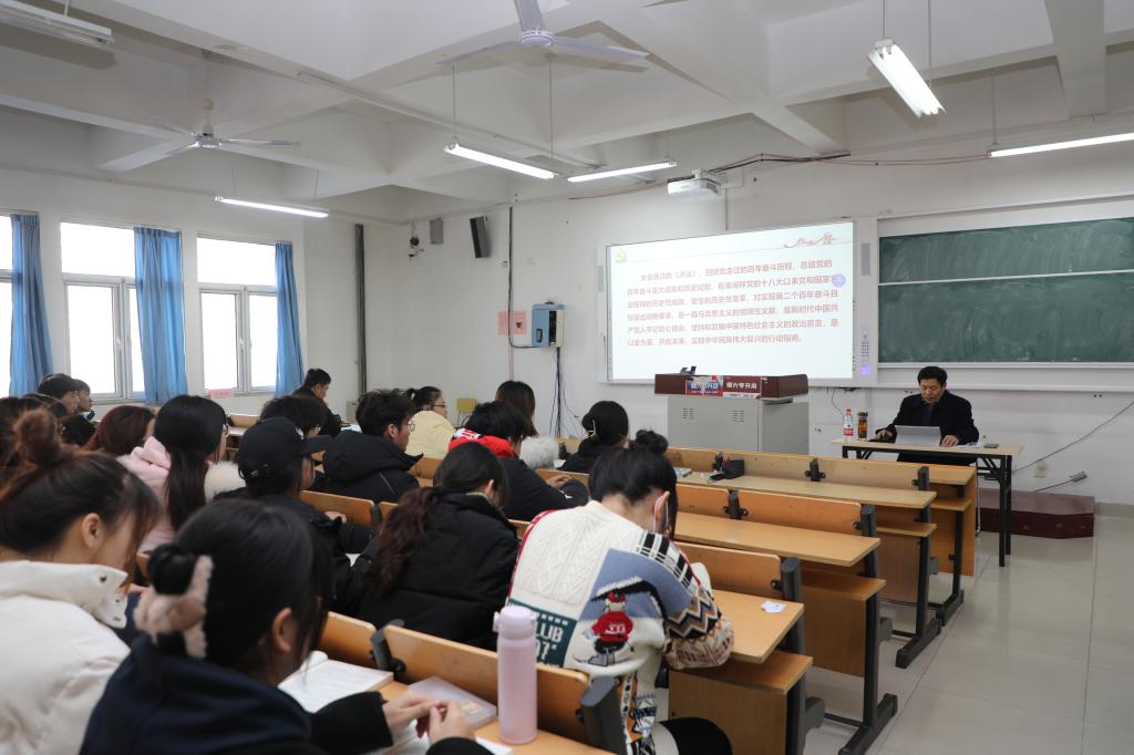 为从百年党史中汲取智慧力量,奋力开创永利官网改革发展新局面,2021年12月期间,学校党委书记王玉华,党委副书记、校长林松柏,党委副书记刘宝君,副校长刘德增,党委委员、纪委书记、监察专员李启波,党委委员、党委组织部部长李伯伟,党委委员、党委统战部部长宋新刚深入思政课堂教学一线,面向不同学院、不同专业的学生进行党的十九届六中全会精神的宣讲活动,扎实推动党的十九届六中全会精神入脑入心、走深走实。