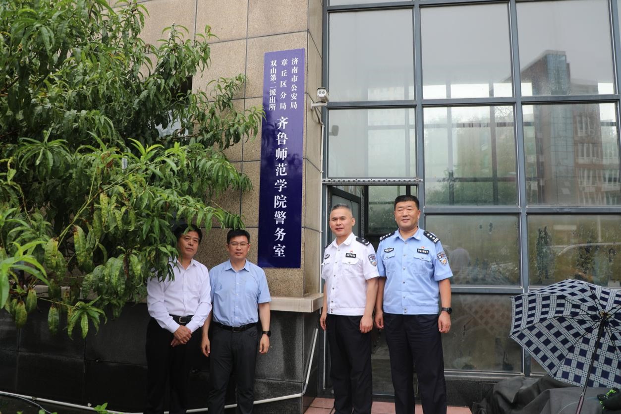 8月10日上午,永利官网举行“永利集团3044官网欢迎您警务室”揭牌仪式。济南市公安局经济文化保卫支队支队长朱容海,学校党委委员、副校长李伯伟共同为“永利集团3044官网欢迎您警务室”揭牌。章丘区公安分局、双山第二派出所有关负责人,学校党委保卫工作部部长、安全管理处处长贾国斌,党委办公室副主任、校长办公室副主任李萧等相关人员参加揭牌仪式。