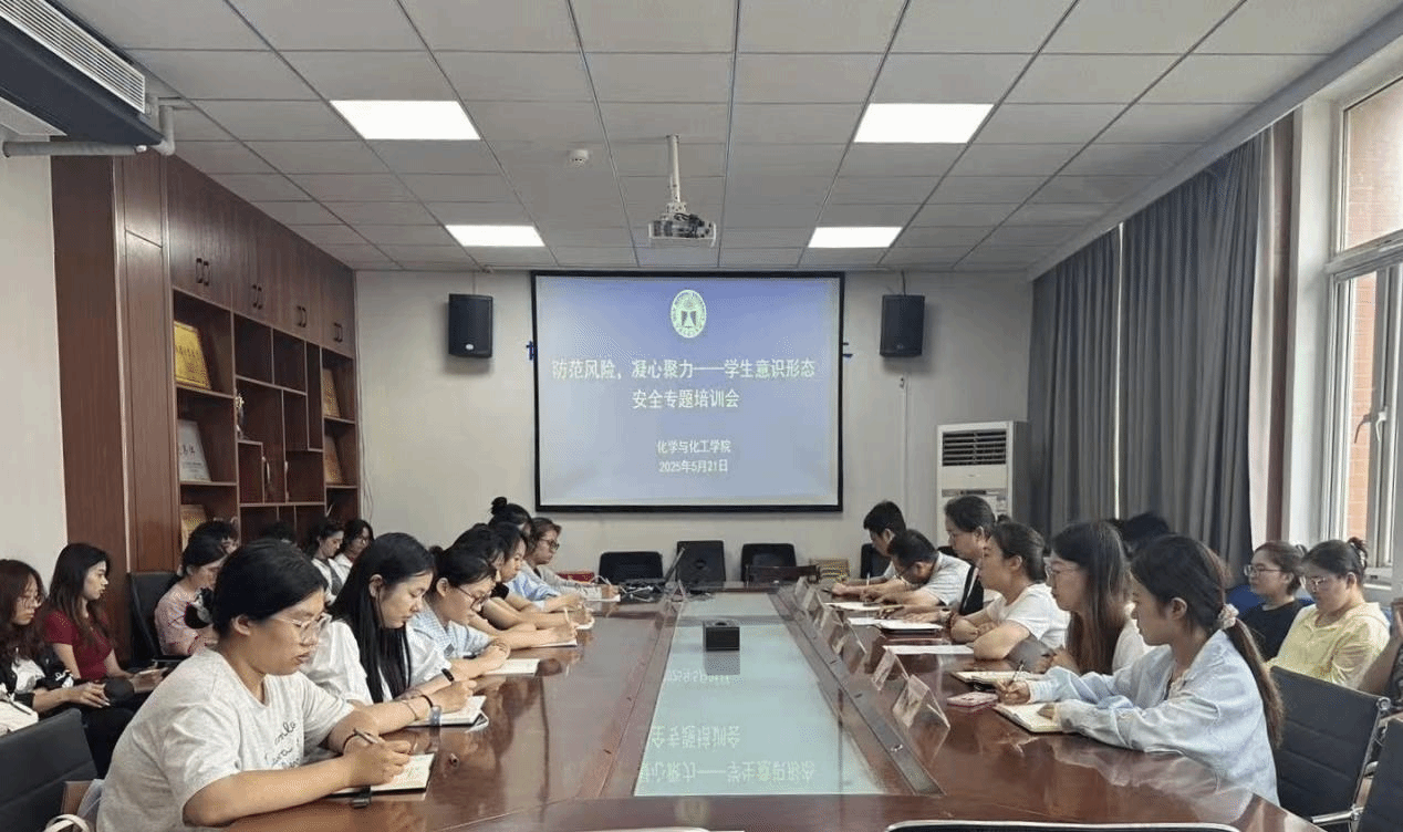 5月21日,化学与化工学院“防范风险、凝心聚力”学生意识形态安全专题培训会在2号实验楼B310召开。学院党委副书记梅茹、团总支书记杨睿、全体辅导员、少数民族学生及2025年上半年党员发展对象参加会议,杨睿主持会议。