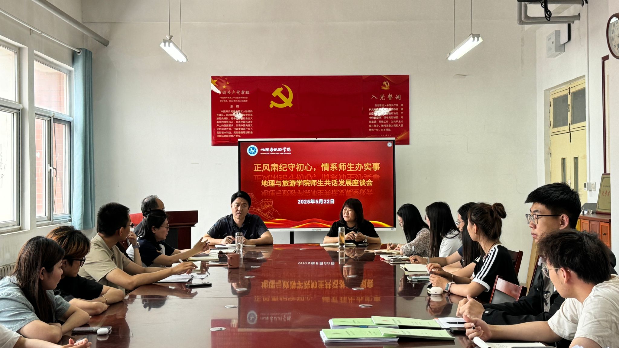 为深入贯彻中央八项规定精神学习教育,扎实推进廉政建设,倾听师生心声,解决实际问题,地理与旅游学院于5月22日在1号教学楼B406会议室召开“正风肃纪守初心,情系师生办实事——地理与旅游学院师生共话发展座谈会”。会议由学院党委书记秦拓主持,学院党委班子成员、行政人员及全体辅导员参加。