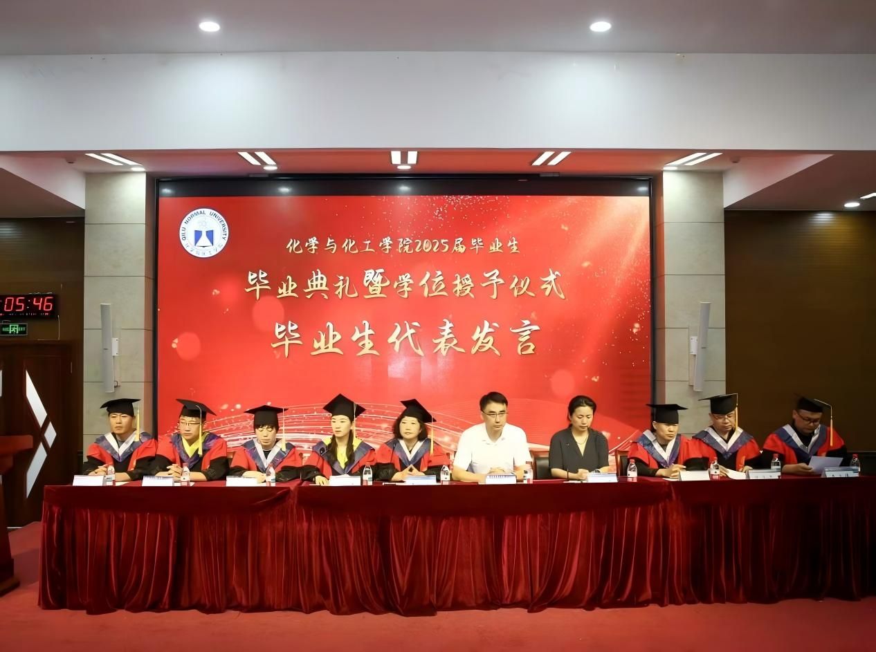 毕业典礼在雄壮的国歌声中拉开帷幕。学院副院长张旭雪宣读了《关于给2025届毕业生颁发毕业证书并授予学士学位的决定》。随后,2025届毕业生代表省政府奖学金获得者、校级优秀学生干部王菁炫、2025届毕业班辅导员代表董坤、2025届毕业班班主任、教师代表商敬敏先后进行了发言。
